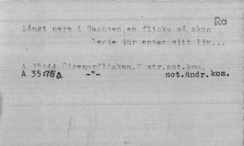 //// Ro //// Långt nere f Sachsen en flicka så skön //// "! ev i *> i Hr s i t t liv... //// A' " • -rH 'c^n.t str.not.k^ri, //// A 35«7!fir& not.ändr.kom. ////