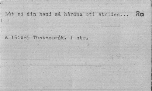 //// Låt ej din hand så hårdna uti striden... &Q //// i //// A 16:435 Tänke3pråk. 1 str. ////