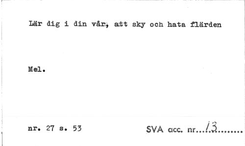//// Lär dig i din vår~j att sky och hata flärden Mel. //// nr. 27 s. 53 SVA cscc. nr...13... ////