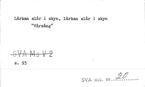 //// Lärkan slår i skyn, lärkan slår i skyn "Vårsång" //// -SVA- //// s. 93 //// SVA cscc. nr...?r:... ////