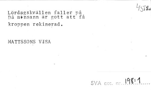 //// bSiSL //// Lördagskvällen faller pa Då mvnsann ar gott att få //// kroppen rekinerad. MATTSSONS VISA //// SVA- IM..1... ////
