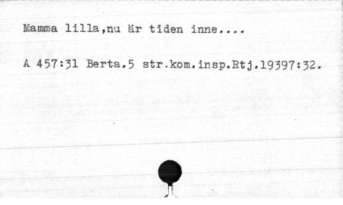 //// Mamma lilla,nu är tiden inne... A 457:31 Berta.5 str.kom,insp.Rtj.19397:32. //// t //// j ////