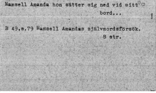 //// Mamsell Amanda hon sätter sig ned vid sitt //// jjUmjJH bord*.. //// , ..;. . . • r • . •••• .j, k * //// B 49,s.79 Mamsell Amandas självmordsförsök. //// 8 str. ////