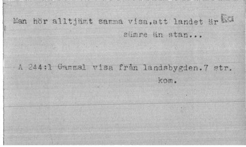 //// lian hör alltjämt samma visa,att landet Ur * //// i .. //// sämre an stan... //// A 2^4:1 Gammal visa från landsbygden.7 str. //// kom. ////