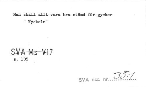 //// Man skall allt vara bra stämd för gycker " Nyckeln" //// sva-Mit-W? //// s. 105 //// SVA ccc. nr < ////