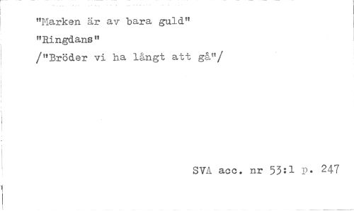 //// "Marken ar av bara gnid" "Ringdans" //// /"Bröder vi ha långt att gå"/ //// SVA acc. nr 53 si P- 247 ////