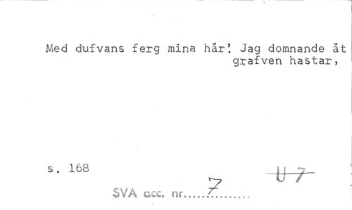 //// Med dufvans ferg mina hår'. Jag domnande åt //// grafven hastar, //// SVA ccc. nr...77... ////