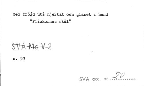 //// Med fröjd uti hjertat och glaset i hand "Flickornas skål" //// s. 53 //// SVA ccc. nr..rrv... ////