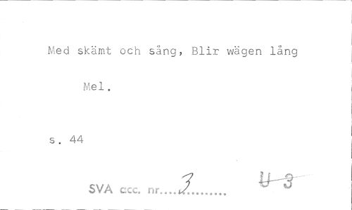//// Med skämt och säng, Blir wägen lång Mel. //// s. 44 //// 7 Ij SVA ccc. nr...t/... w' ////