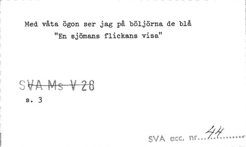 //// Med våta ögon ser jag på böljorna de blå "En sjömans flickans visa" //// SVA Ms V 28 //// s. 3 //// SVA ccc. nr... ////