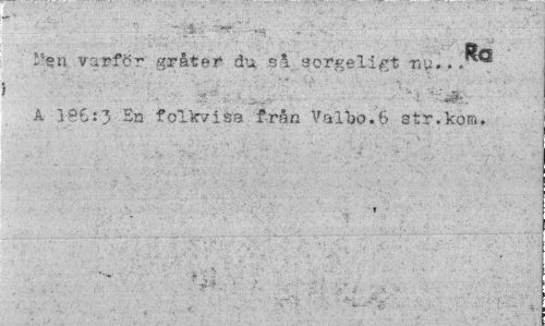 //// ''en varför: gråter du så sorgeligt r»u. . A 186:3 2n folkvisa från Valbo.6 str.kom. //// t ////