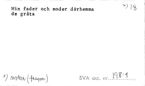 //// Min fader och moder därhemma de gråta //// *) tMMh) ftMm ) SVA ccc, nr.. iM 1... ////