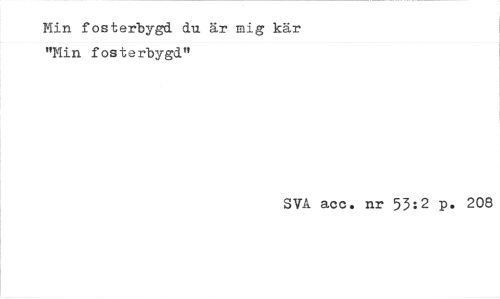 //// Min fosterbygd du är mig kär "Min fosterbygd" //// SVA ace. nr 53:2 p. 208 ////