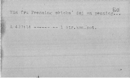 //// Vi-, , ¦ //// t ¦ //// 'in Cri Frennim; akioVa' dej en penni I' A 4-20:14 ---—- 1 otr. korr. hot. //// i //// .4 ////