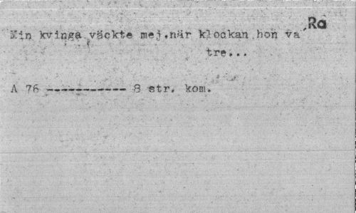 //// ,Rd //// Min kvinsra väckte me.i ?när klockan.hon va' //// i i //// tre... //// A 7(S ——---8 str. kom. ////