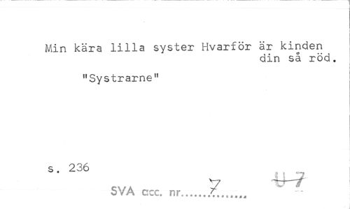 //// Min kära lilla syster Hvarför är kinden //// din så röd. //// "Systrarne" s. 236 //// V f' //// SVA ccc. nr... ////
