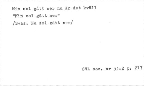 //// Min sol gått ner nu är det kväll "Min sol gått ner" /Svas: Uu sol gått ner/' //// SVA acc. nr 53:2 p. 217 ////