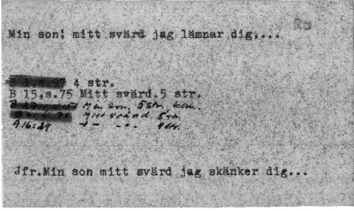 //// Min soni mitt svärd j*g lämnar dig*... //// MWtfW 4 Str* //// B 15»s.75 Mitt svärd.5 str. litlnMiÉÉ? fs^.^e*^. //// mmätäm /*tvf- //// v; » ä -J', : VJ -i 'r1/. Vä**'."^' •'.*"'. '"*¦'¦'. >' '/v.*. ' •*•»: //// Jfr.Min son mitt svärd jag skänker dig... ////
