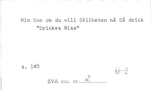 //// Min Son om du vill Sällheten nå Så drick "Drickes Wisa" //// s. 145 ,, //// ih2 //// j //// SVA ccc. n... ////