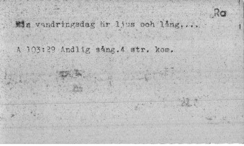 //// vandringsdag är lius och lång,,., j //// A 103:29 Andlig 3ång,4 str. kom. //// V^r- ** v ~ " * • • ¦ " //// ,s> ¦ ¦ *; ////