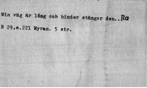 //// Min väg är lång och hinder stänger den.. //// Ra //// B 291s.221 Myran. 5 str. ////