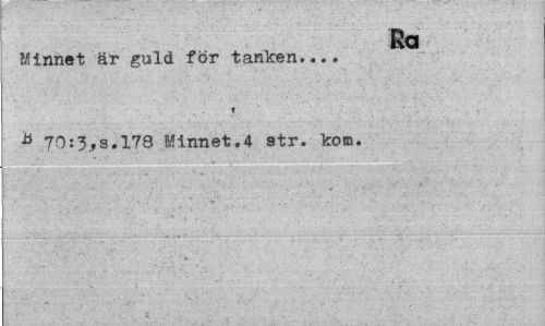 //// Ra //// Minnet är guld för tanken... //// t //// 70:3.»s.178 Minnet.4 str. kom. ////