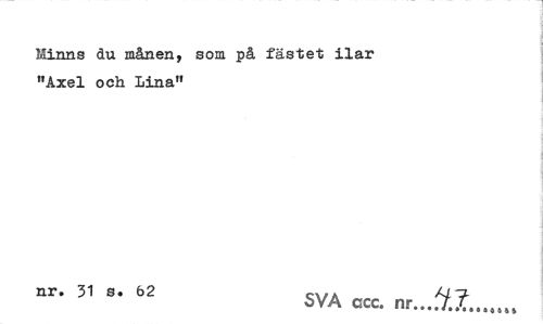 //// Minns åu månen, som på fästet ilar "Axel och Lina" //// nr. 31 s. 62 CWA /j-j. //// SVA ccc. nr...J.X...,.», ////