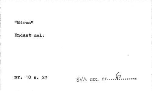 //// "Mirza* Endast mel. //// nr. 18 s. 27 sVA ccc. nr...fe... ////
