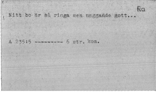 //// Ra //// , Kitt bo är så ringa men naggande gott... A .235:5---6 str. kom. ////
