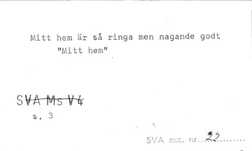 //// Mitt hem är så ringa men nagande godt "Mitt hem" //// s. 3 //// i //// SVA gcc, nr... //// V... ////