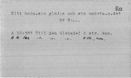 //// Ra //// Mitt "nopp.min gläd .le och min smärta »o.det //// är d i,. . //// A 16:3^? Till d*»n älskade.' 4 str. kom. ////