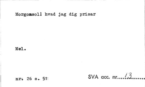 //// MorgoasolJ hvad jag dig prisar Mel. //// nr, 26 s- 51 SVA ccc. nr... Lå... ////
