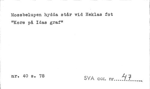 //// Mossbelupen hydda står vid Heklas fot "Kors på Idas graf" //// nr* 40 S* 78 SVA ccc. ////