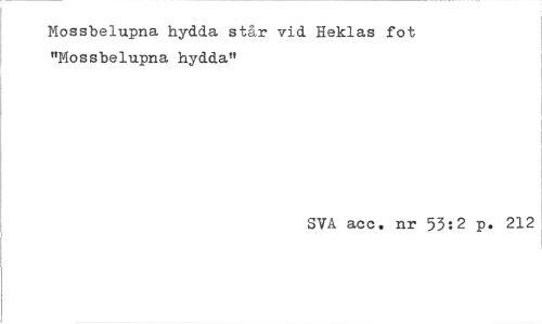 //// Mossbelupna hydda står vid Heklas fot "Mossbelupna hydda" //// SVA acc. nr 53:2 p. 212 ////