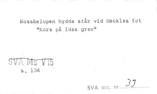//// Mossbelupen hydda står vid Hecklas fot "Kors på Idas grav" //// STTTMrTB //// s. 134 //// 31 //// SVA ccc. nr.../... ////