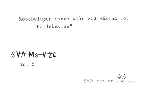 //// Mossbelupen hydda står vid Häklas fot //// "Kärleksvisa" //// nr. 5 //// SVA ccc. nr..JZj. ////
