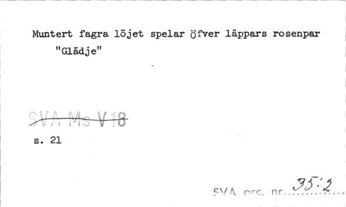 //// Muntert fagra löjet spelar öfver läppars rosenpar "Glädje" //// tu. //// i i tiO W , \J //// s. 21 ////