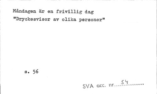 //// Måndagen är en frivillig dag "Dryckesvisor av olika personer" //// s. 56 //// SVA acc. ... ////