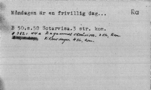 //// Måndagen ar en frivillig dag... B 50.S.58 Sotarvisa.3 str. kom. //// ? 3?& t W a. £ s'6n£t//set, 3 s'/s-v ////