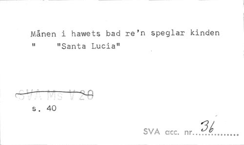 //// Månen i hawets bad re'n speglar kinden //// " "Santa Lucia" --¦-- //// s. 40 //// SVA ccc. ... ////