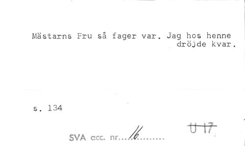 //// Mästarns Fru så fager var. Jag hos henne //// dröjde kvar. //// s. 134 //// j/ itif-SVA ccc. nr.../£... ////