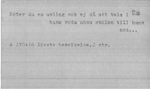 //// Blöter du en usling sök e,i då att tala i 4 //// r //// hans röda näsa skälen till hans //// nöd... //// •A 270:16 livets besvikelse,2 str. ////