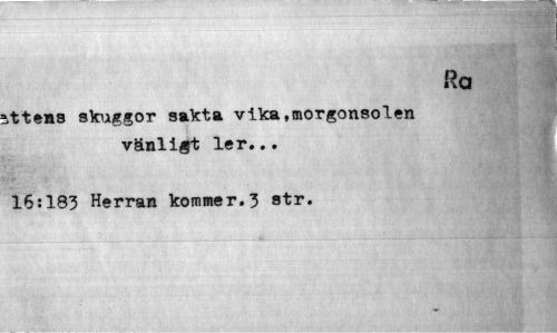 //// Ra //// ättens skuggor sakta vika,morgonsolen vänligt ler... //// 16:183 Herran kommer.3 str. ////