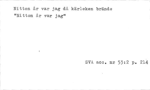 //// Nitton år var jag då kärleken brände "Nitton år var jag" //// SVA acc. nr 53:2 p. 214 ////