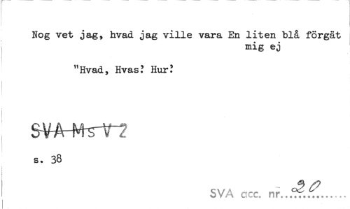 //// Nog vet jag, hvad jag ville vara En liten blå förgät //// mig ej //// "Hvad, Hvas.' Hur? //// sva-f/hrt? //// s. 38 //// SVA cscc. ... ////