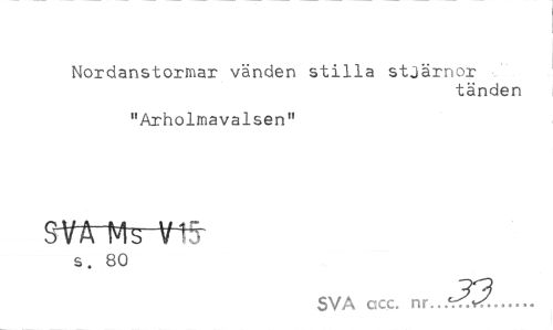//// Nordanstormar vänden stilla stjärnor //// tänden //// "Arholmavalsen" //// stfrn^m //// s. 80 //// SVA acc. nr...-T?,"?... ////