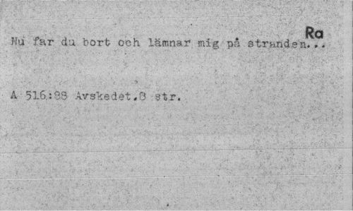 //// Ra //// Hu far du bort och lämnar mig på stranden. .. A 516; SS Avskedet#3 str. ////