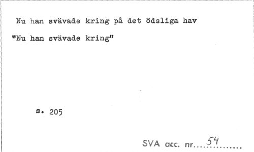 //// Nu han svävade kring på det ödsliga hav "Nu han svävade kring" //// s. 205 //// SVA acc. nr...?.?... ////