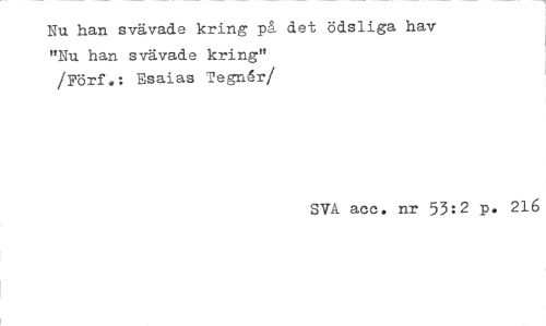 //// Ku han svävade kring på. det ödsliga hav "Nu han svävade kring" /Förf.: Esaias Tegnér/ //// SVA acc. nr 53:2 p. 216 ////