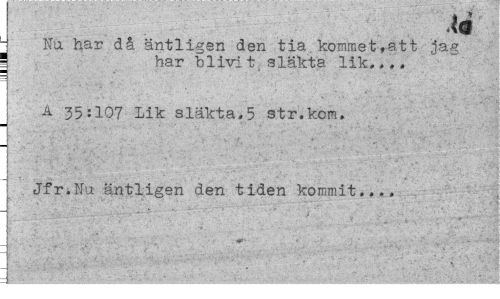 //// ié //// Na har då äntligen den tia kommet,att jag ! har blivit slakta lik.»., //// A 35:107 Lik aläkta.5 str.kom. Jfr.Nu äntligen den tiden kommit... ////